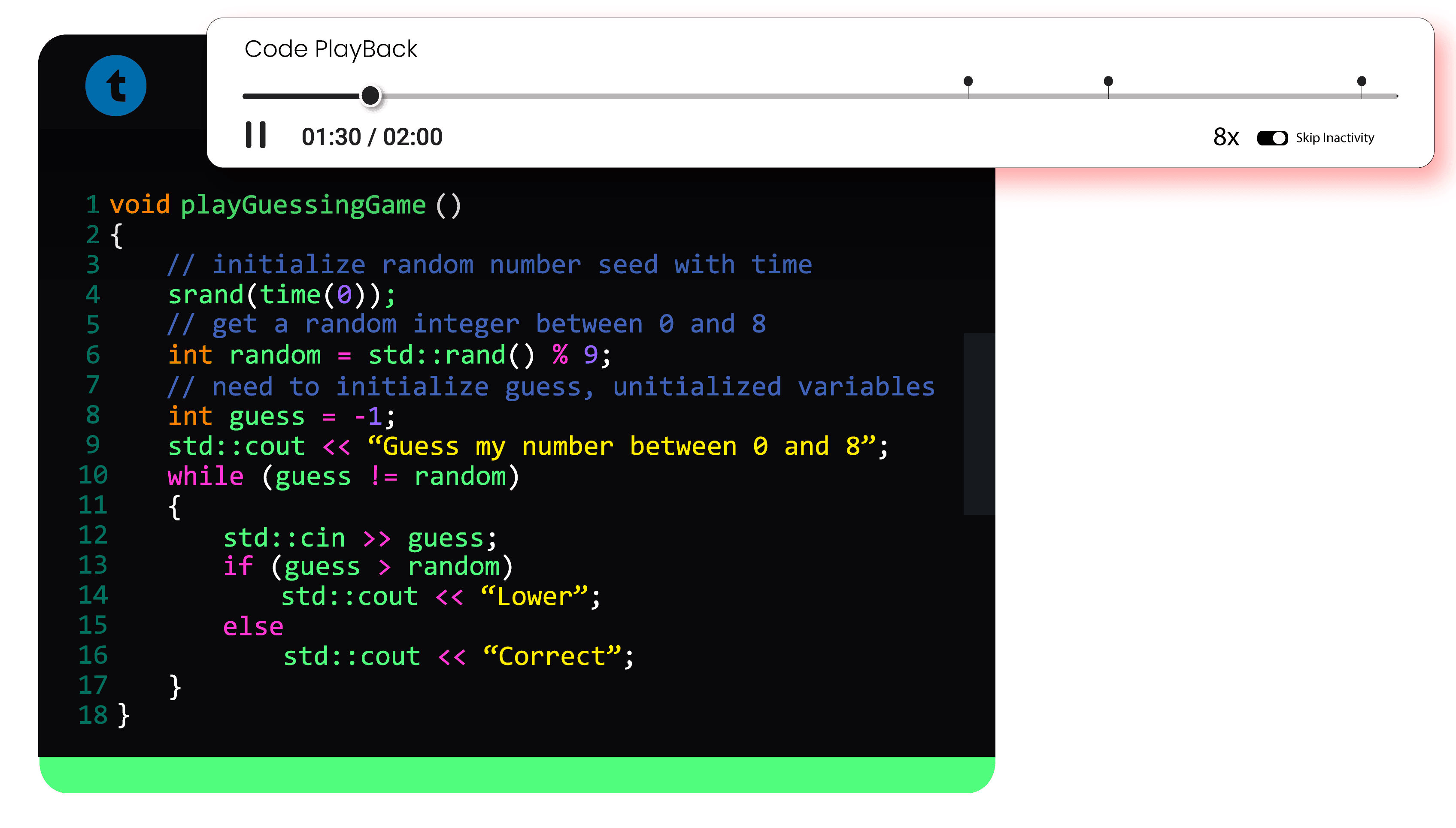 Use score cards or reports to review scores, code playback, and behavior logs.